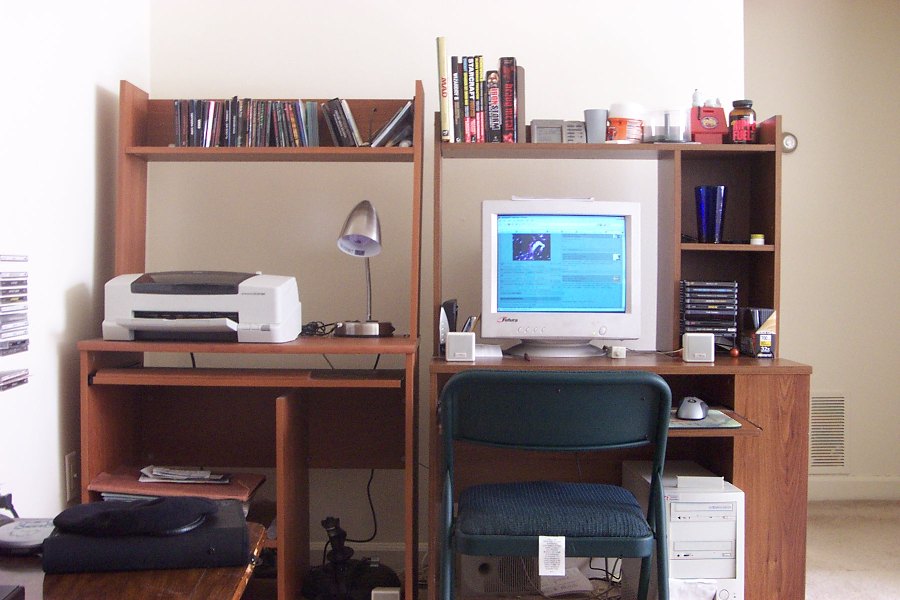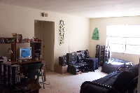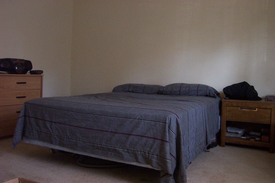 'Twas a good deal, overall... It's my first (own) bedroom set and it didn't cost me very much. It looks nice, and was cheap. I doubt it will survive many moves, but I don't think I need it to, because I should be able to get something much better by the time I'm out of the Army. UPDATE -10NOV02 Well, due to Giggleman's poking and prodding I've decided to update this page. Not to mention that he went ahead and said something about my lack of update on his own apartment page... Things like that shouldn't go unsettled. So here I bring to you: MORE PICTURES OF MY APARTMENT Please note, that I still don't have all the furniture I want. I still need an entertainment center, and I still need a bedroom set. Please don't make fun of me.. I need a small kitchen table as well, but I don't really have the room for that.