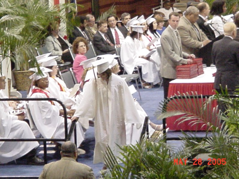 So I made a movie of her crossing the stage, since I could tell from my picture previews that the pictures were coming out very badly. It is in this movie that you will hear the two previous graduates, and then "Rebecca Muh-let" two which you will hear Aunt Donna and cousins Jennifer and Stacey scream at the top of their lungs, and then a couple more graduates.