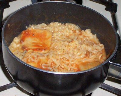 For those of you who didn't completely follow Giggleman's site from the beginning, you missed his ill-famed "Loser Meals for One" page. A page where he generally made a meal that a bachelor would typically make (similar to meals like "Macaroni and Cheese with chopped up Hot Dogs".. My uncle Zachary made that for me once..) and posted how and why and all that good stuff.. I guess it turned out to be too much of a pain in the ass for him and he stopped doing them, and eventually took the entire segment (along with a million others) off his site. So there... That's my credit for the inspiration that motivated me to do this page. Here, I will attempt to do things that have never been done before. Venture into realms that haven't yet been imagined. I will take what comes to me of course.. Mostly when the question pops into my head "What can I do with these leftovers?", I'll have a new invention! And if I'm feeling frisky I might take the time to take pictures of it to put it on this very page! If I make a lot of stuff, I will have a different page for three different meals or so.. but for now I'll just do them on this page.. So without further ado, I bring to you..: So there I was, in my kitchen.. holding a Gladware container 1/5th full of leftover Ravioli that I just couldn't finish the night before. "This isn't enough for a meal..", I spoke to my pile of stuffed animals sitting on a box outside of my kitchen, and then I began tapping my upper teeth with my irregularly long fingernail.. Thinking.. Thinking.. What can I do with this? "You have plenty of Ramen noodles.", one of the stuffed animals murmured.. Even though I told them I was ignoring them.. Why do they keep speaking to me? But it was a good idea anyway, so I pulled out a bag of creamy chicken flavored Ramen and threw it in a pot of near-boiling water. I waited three minutes or so, pulling a noodle out occasionally to see if they were done or not, and once they were I went to drain most of the water out. I pulled the pot up too hard and a bit of water spilled on my bare (except for the crumbs sticking to the bottom of it of course) foot.. and it hurt something fierce I tell you. Anyway, I drained all but a quarter inch of the water and added the MSG intense flavoring and stirred it up good. ![]() Looking good so far, right? Well I think so at least. Then came the moment of truth. The event that would put me into the point of no return. It was time to add the cold ravioli. I pulled the container out of the fridge, opened it and dumped it into the pot (I left the stove on low, in case the ravioli made the food too cold). ![]() Still looking good, right? Erm... Anyway, from that point I stirred it up real good.. Making sure to get a nice even and seamless ravioli and ramen taste to this amazingly creative venture. ![]() If someone were to ever came to me, and say "Jonathan, you are about to see a little clump of heaven cooking in a pot.", I would have imagined it'd look something like this. From there I dumped it into a bowl. I would have taken a picture of it.. But I'd like to think all five of my readers have an imagination. In this case, you will have to use that 'imagination' and put a blue ceramic bowl in place of the pot you see above and that's what it looked like. And add a spoon. But enough about the looks.. How did it taste? But I do consider it a success. Will I ever do it again? Heh! Not when there's so many other concoctions to try! Until next time... |