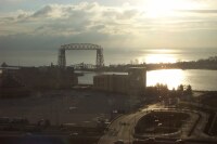 There was a bridge there, that basically crossed over into Nebraska. It was lit up with black lights, sort of giving it an 'acid trip' feel. People driving don't try to run you over when you want to cross the street.Duluth, Minnesota. One pic was taken out of my hotel window, the other taken out of the rotating restaurant on the top floor. I was amazed at the size of this city that I had never heard of. Come to find out, it has less than 90,000 people inhabiting it, which is way out of proportion to the size and number of the buildings. Hills that reminded my coworkers of San Fransisco run rampant all about the town.