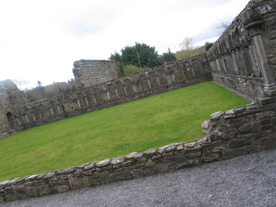 Our very first stop was the Dolmen Hotel. We didn't stay there... we just took a break there. Inside was a pleasing atmosphere common with really old, well maintained establishments. Good coffee. Good soup. Good bread. After eating, I walked outside and looked around... and here's where you see the pictures that I took above. Still jetlagged it was hard to stay awake during the ride to the next stop, Jerpoint Abbey. I took a lot of pictures of the hours' worth of countryside, but unfortunately (even with the gray skies) there was a lot of reflection on the bus window so you won't see any here (they aren't worth seeing). |
