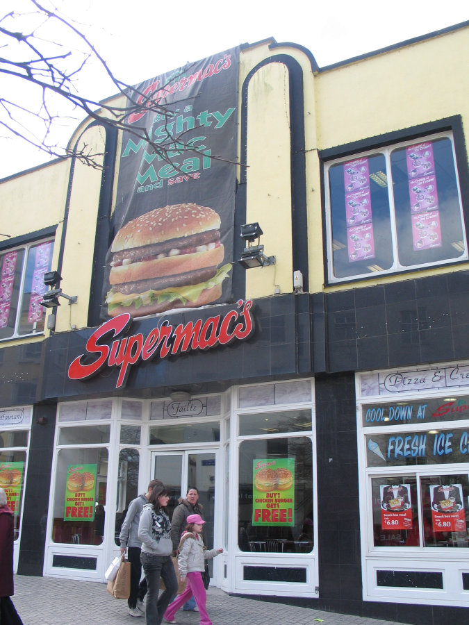Walking around was kind of a mixture of looking for something to see, and looking for something to do. There were plenty of shops, but we weren't interested in shopping. There were plenty of restaurants, but once I saw SuperMac's, I had to try it. As I mentioned in my caption, it wasn't as good as McDonald's, but it was probably a lot healthier. Their selling point is that all the beef in their burgers comes from Irish cows; I doubt McDonald's could make such a claim. At some point we walked into a church, that was open to the public. It was very quiet, beautiful inside... I tried getting some good pictures but without using flash, and without a tripod, it was impossible. When we met back on the street corner we were greeted by a paid local (he may have been a friend of our bus driver), who gave us his version of the history/historic sites that I've now forgotten. I do remember, at one point I got to be a prop in a play that he put on, where I "played" the role of Strongbow, and my wife the unfaithful queen who I died for. I don't remember much about it, except that it became my nickname for the day. Our time at Waterford concluded shortly thereafter, and we hopped on the bus (Gus), and went to some historic rural area, Brod Tullaroan, where the sport of hurling was invented (or, where the best hurling player was born... I can't remember). |