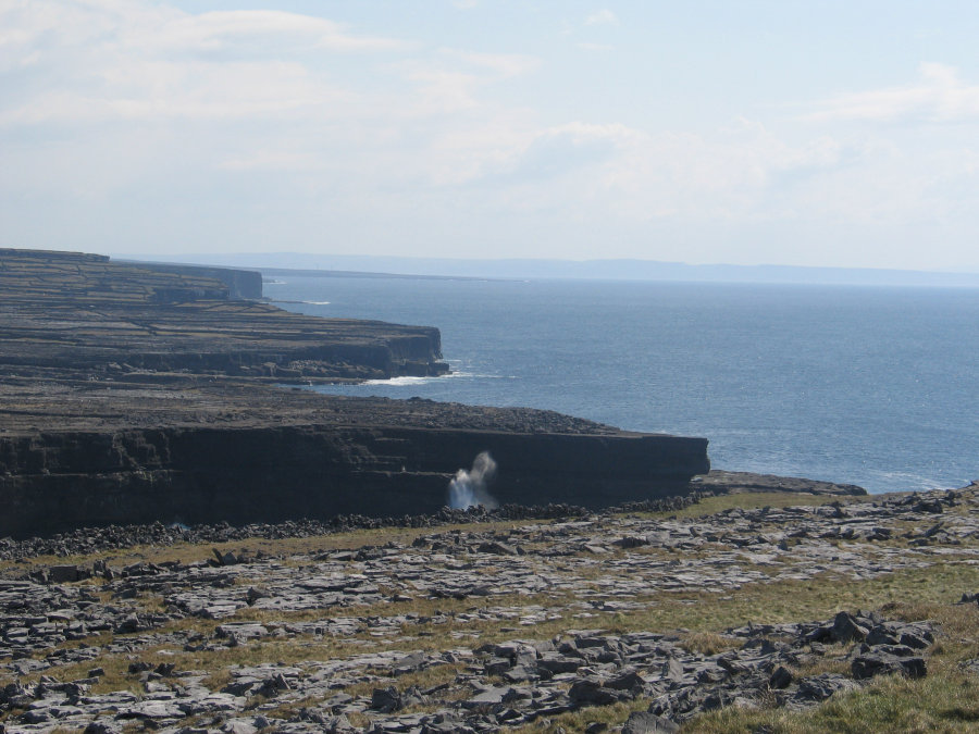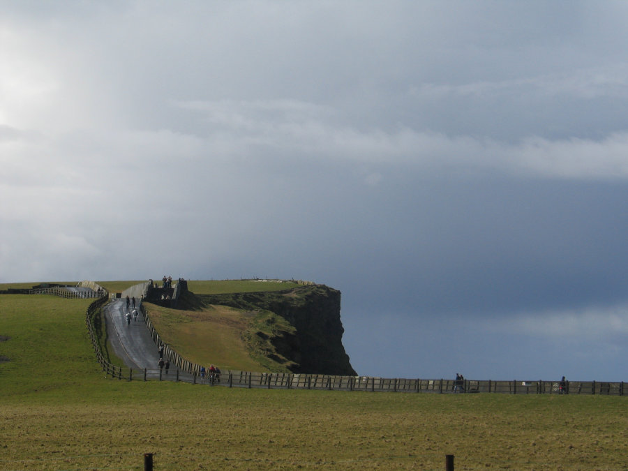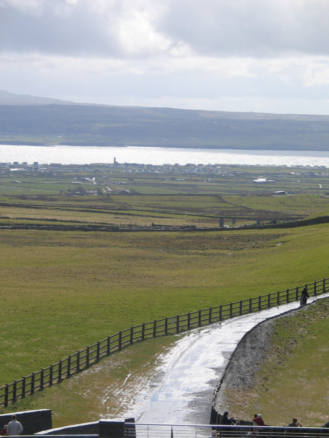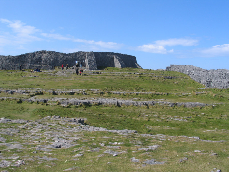 Because my wife is a culture freak, the Aran Islands were a necessity, and a huge reason why we picked the Irish Legends tour over the other, similar ones offered by CIE. There is where they make their own clothes, and remain self sustaining. The gift shops sold a lot of Chinese made goods, but they also featured small sections of expensive, locally made treasures. The weather was very unpredictable. It would go from cold and windy (and dark), to warm and calm (and bright) in the space of a couple of minutes, and back again. With that backdrop, after lunch, we went on a small tour of the island, looking at cows, cemeteries, and the pinnacle of the tour: The 2000 year old (plus) Dun Aengus (Dún Aonghasa) fort. This fort was good exercise in getting to. Lots of stairs to climb, lots of rocky paths to conquer. When we finally got to the top, it was incredible. The fort was built as a half-circle, against a cliff. That cliff? Very high. At the bottom of the cliff? Lots of large rocks and water. I don't think a camera is capable of capturing the depth of what it was we stood on, how high we were off the water. But I tried. I even attempted a video, and have kicked myself every time I think about how stupid I was in the way I went about recording it. More on (moron) that later. While it was a lot to take in, there really wasn't much to look at. One angle from another looked the same... there was no way to get a better picture. This area wasn't nearly as photogenic as the Cliffs of Moher, but being there felt much more incredible. While the Cliffs of Moher felt like it was timeless, Dun Aengus felt like a place that time forgot - unwelcoming in a sense (my wife vehemently disagrees with me here) (likely because she didn't nearly fall off a cliff), due the very rough and colorless terrain, and the general lack of life around it. |