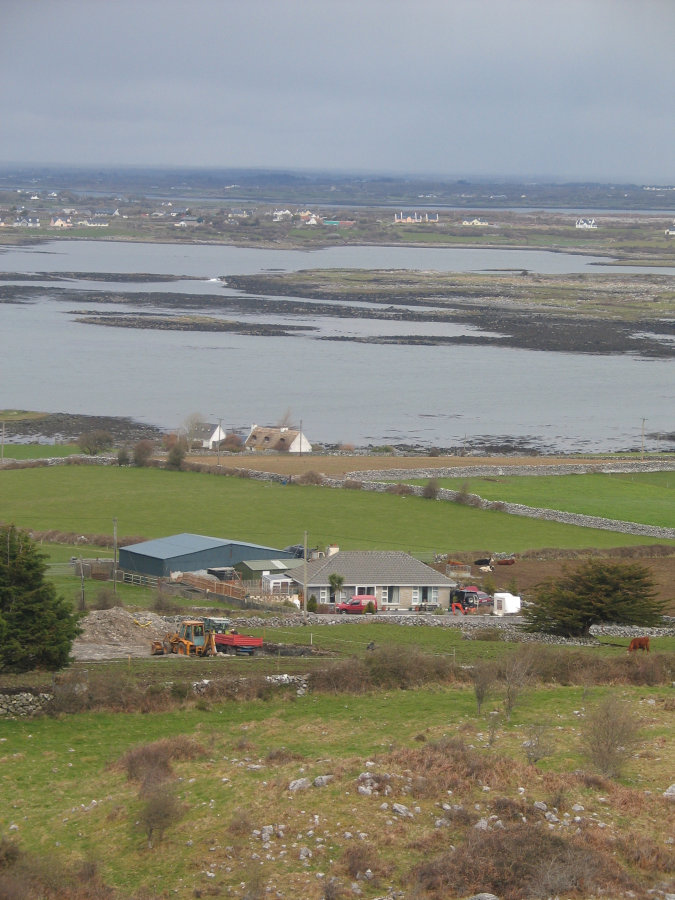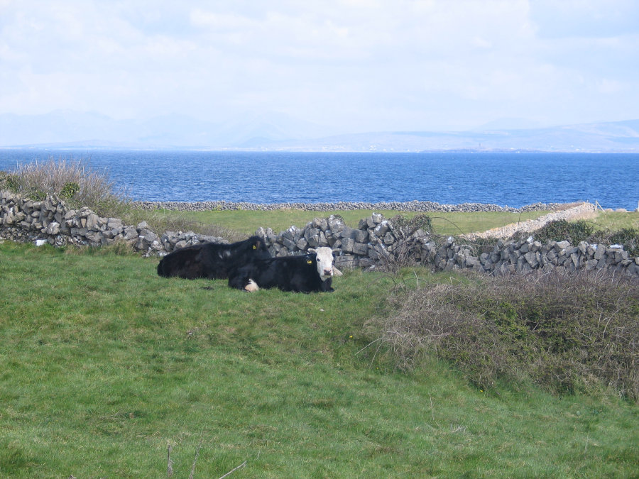 There were lots of things to explore... We found a house that burned down a very long time ago, and walked around seeing what was left of its still standing stone walls. I wondered if anyone was watching us (it was obviously private property), and how many other tourists in the past were as brave as we were to enter it. We walked along a shore that I'm certain is not duplicated anywhere in the world. There were incredible formations of clay, rock, and life. The clay parts were strange, because it was like walking on rubber. Jumping and stomping on the ground with both feet would cause a strange shockwave ripple three or four feet in radius, but the wavy formation of the (clay dunes?) remained intact, except a minimal difference where your shoes impacted the surface. One of the more unique memories I have, is of a cat that had (to my speculation) been hit by a car, but was still functional, and happy to be alive. It had a huge scab on the side of its head, and a number of medium sized ones on the same side of its body. It sat on a waste-high stone wall as I moved toward it, and it looked like it wanted to be skittish, but decided to let me approach. At the lightest touch, the cat enthusiastically pushed against my hand, turning, purring. Of course, I nimbly avoided touching the plates of dried blood. A group of middle-school aged students were in the area, and they were all scared of the cat. Except for a single girl... I think she (and the rest of her class) were French. She wasn't as brazen as I was, but she was willing to touch the animal. My wife warned me of bacteria, etc., but I felt so bad for the cat because it was obviously in great pain... besides I wasn't touching the gushy parts. I did wash my hands afterwards as a precaution, and luckily, nearly three years later, I still haven't dropped dead from it, nor have my fingers fallen off. We got back on the ferry to return to Galway for dinner and our final night in Ireland, outside of Dublin. |