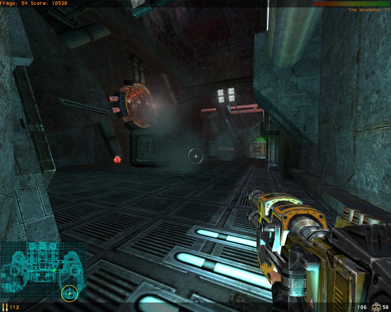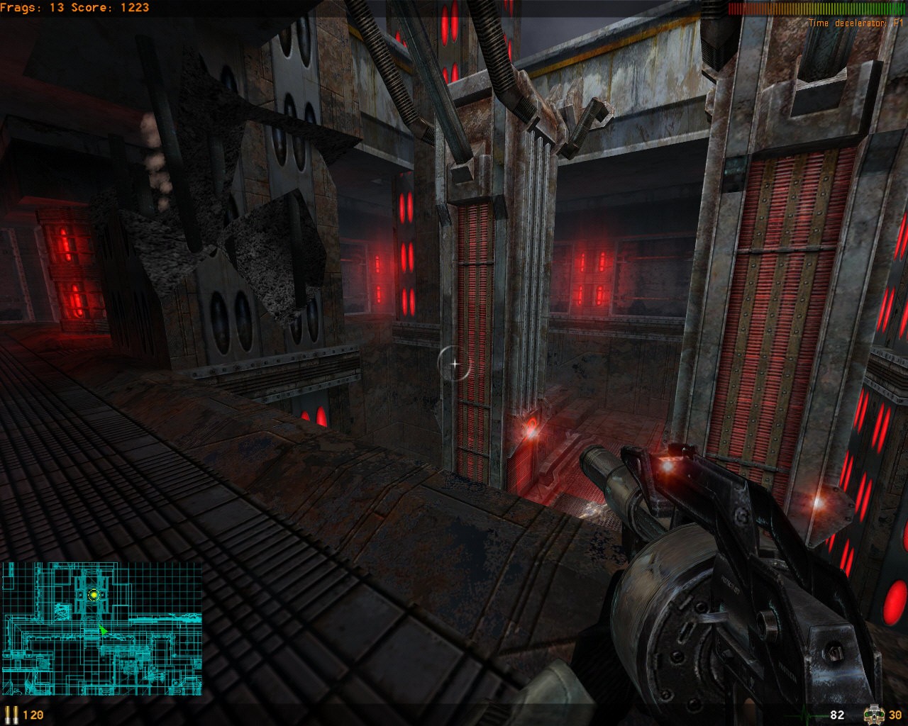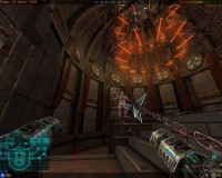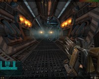 The graphics themselves I thought were pretty good (especially when considering how smooth the game ran). Textures were pretty sharp and models were reasonably detailed. The world layout usually made sense and there were a lot of effects almost every angle you looked. Every metal piece had a reflection/shine to it.. Every light had nice looking corona applied to it. Most impressive are the extreme particle effects that actually did not hinder my framerate. The level "art" is comprised of mainly a futuristic gothic style that I felt was well done. I don't know the story behind the levels but it was definitely atmospheric enough to immerse me.