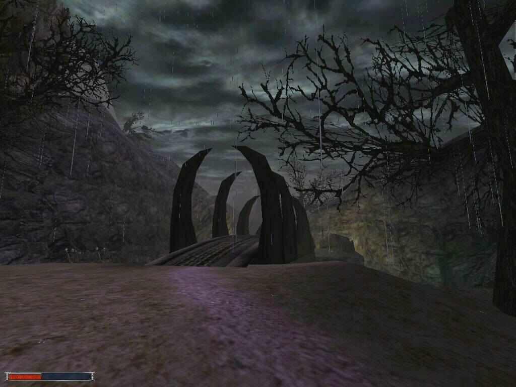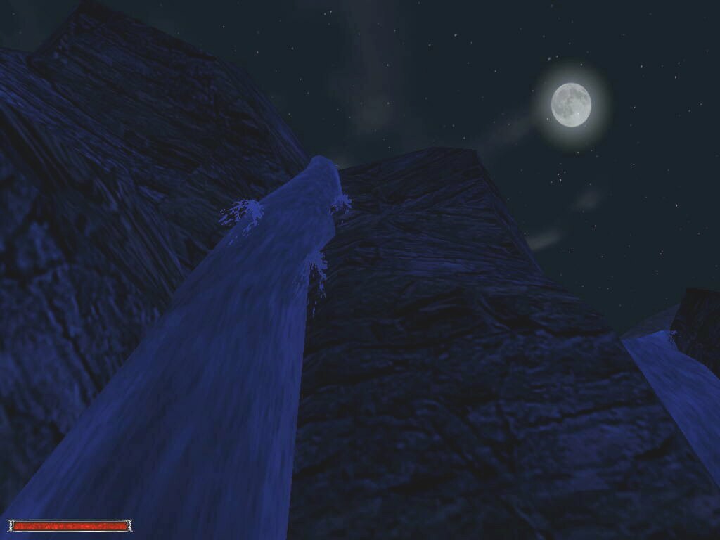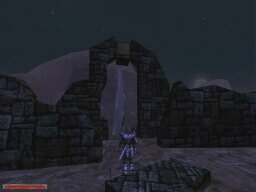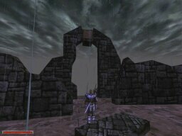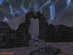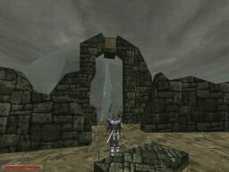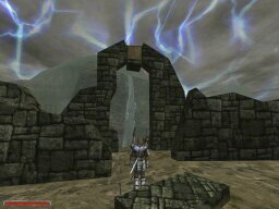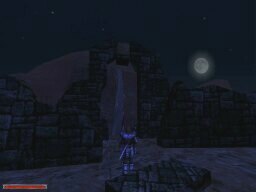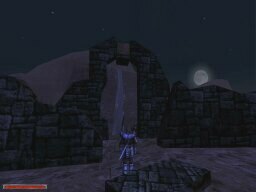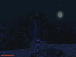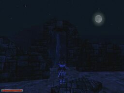 These shots were taken to show the weather/time system implemented in the game. Each picture was taken 2 minutes apart. Notice the moon going down, then the 'magic shield' warbling as clouds roll in for the rain, then the fog-in because of the 'rain', and then the shield warbling again as the clouds roll out. There's lightning too, but I wasn't quick enough to catch it.