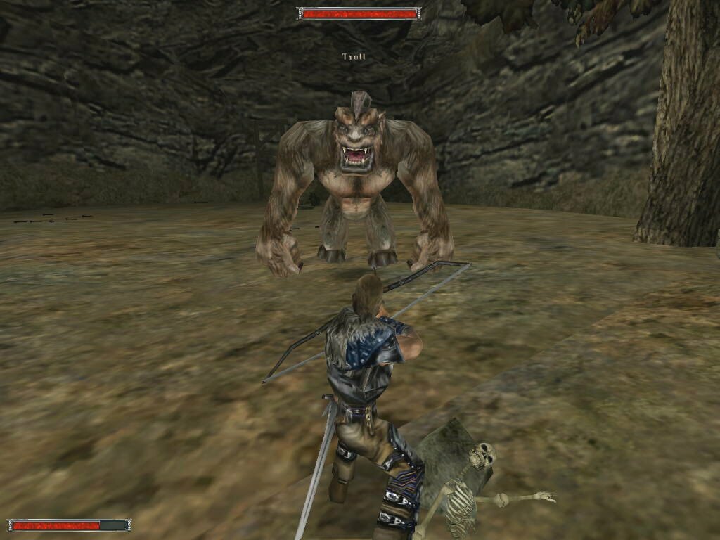 Other things worth mentioning include the ability to carry ANYTHING in your inventory. There is no limit. Also whenever you clear out a cave of monsters, you are always rewarded with something useful. There have been many games I've played where you spend hours clearing out skeletons and all you get in the end is a helmet that you've already had for days. There's also a good variety of monsters and weapons and spells. Not the most I've seen, but all are useful. The game itself is rather easy, which I like. You can kill anything if you have the patience. Shoot it with an arrow, run away, and when it stops chasing you, shoot it again. I've spent many hours doing this, and I never tire of it. Later when I learned the fire storm spell, it became much more efficient. I noticed that if you switch to sword while the monster is burning, it will die, and if you don't, it will just run after you. A welcome bug if you ask me.