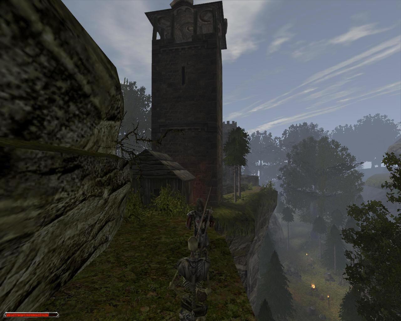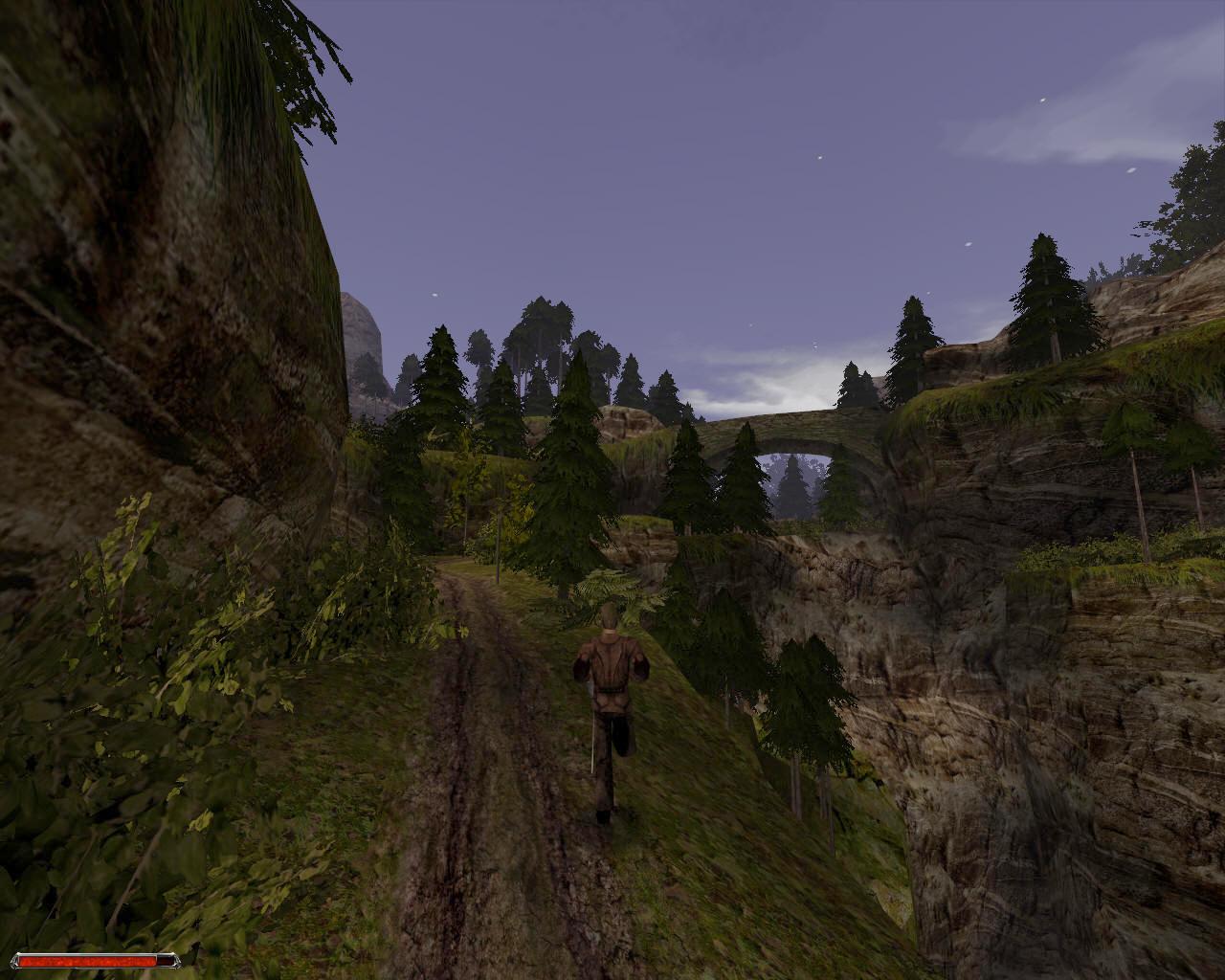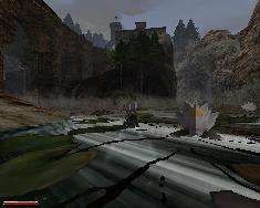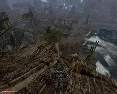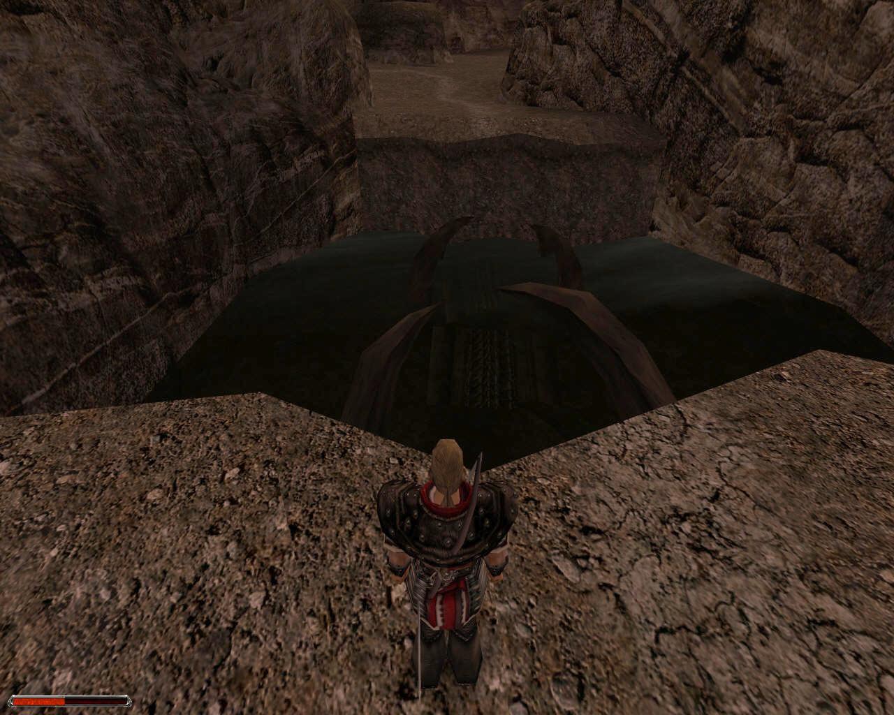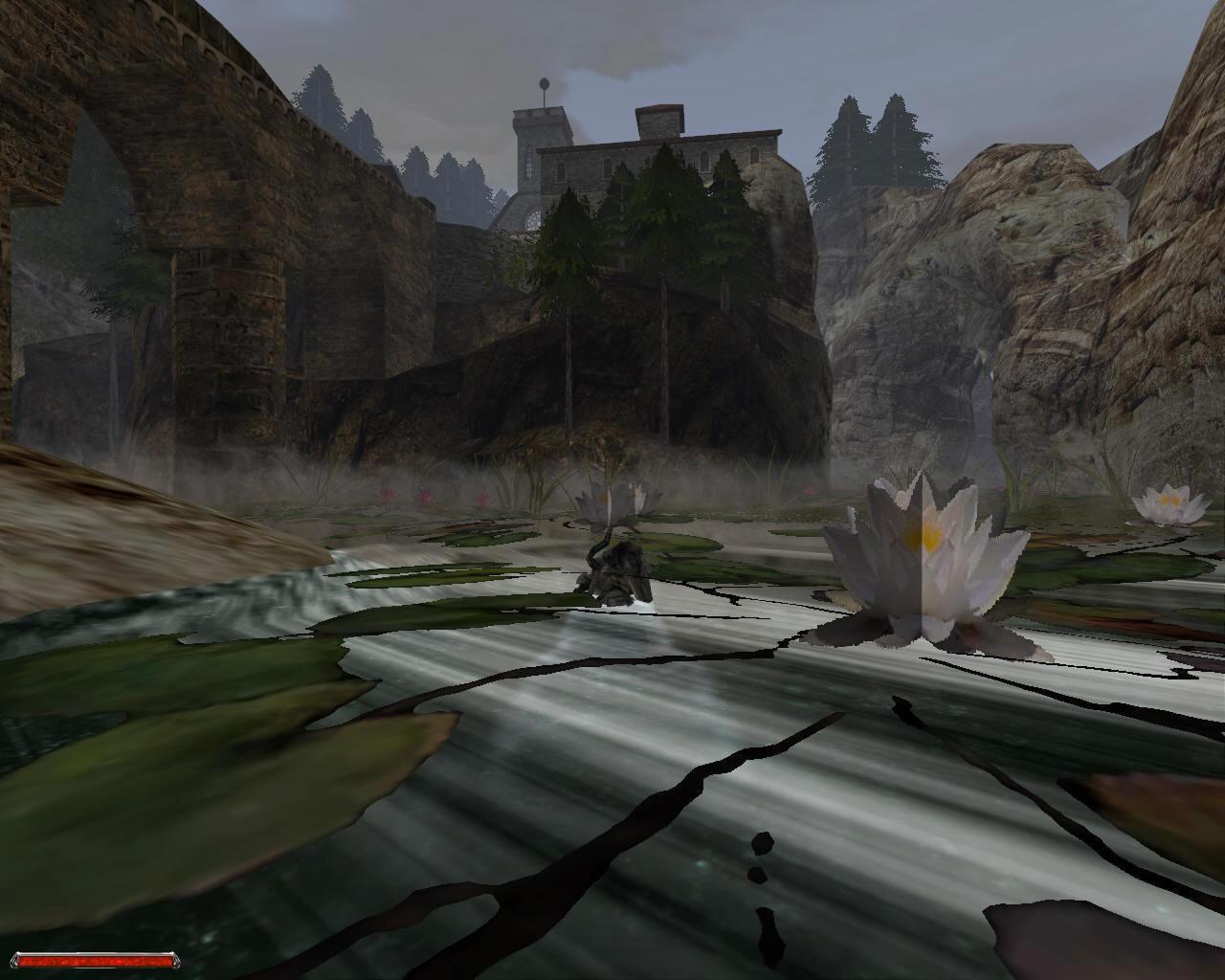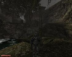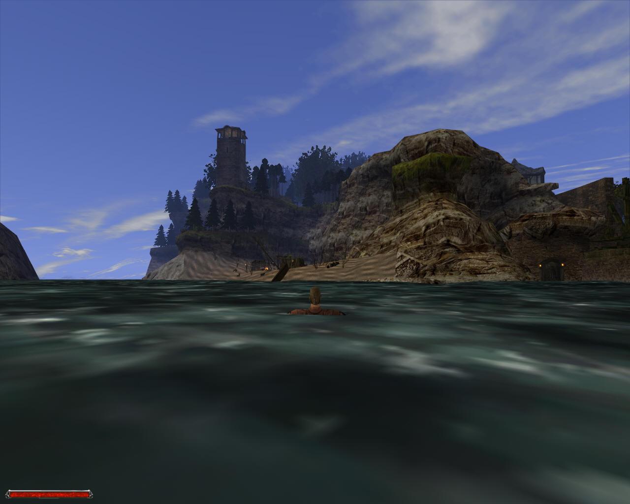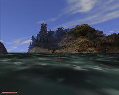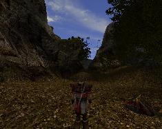 One thing that kind of disappoints me about the world design, is there are so many ways to go places you weren't meant to that you get stuck between rocks or sliding up a mountainside (yes.. sliding UP). I'll go through all these antics trying to jump to the top of a pile of boulders to get to the top of a cliff that I can only barely reach with the hopes of finding some special potion or scroll or book or character at the top, but instead I find holes into infinity, and ugly stretched textures that I wasn't meant to see. In the Old World I made it to where the Orc camp was supposed to be (the place across from the broken bridge), but found a mountainside that led up to nowhere (where a temple entrance used to be). Also, I found no secret caves or tunnels by swimming underwater (though I did read about one secret cave that can be found in the Old World somewhere).