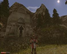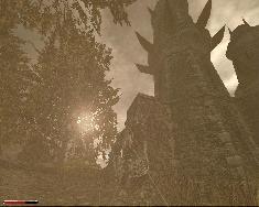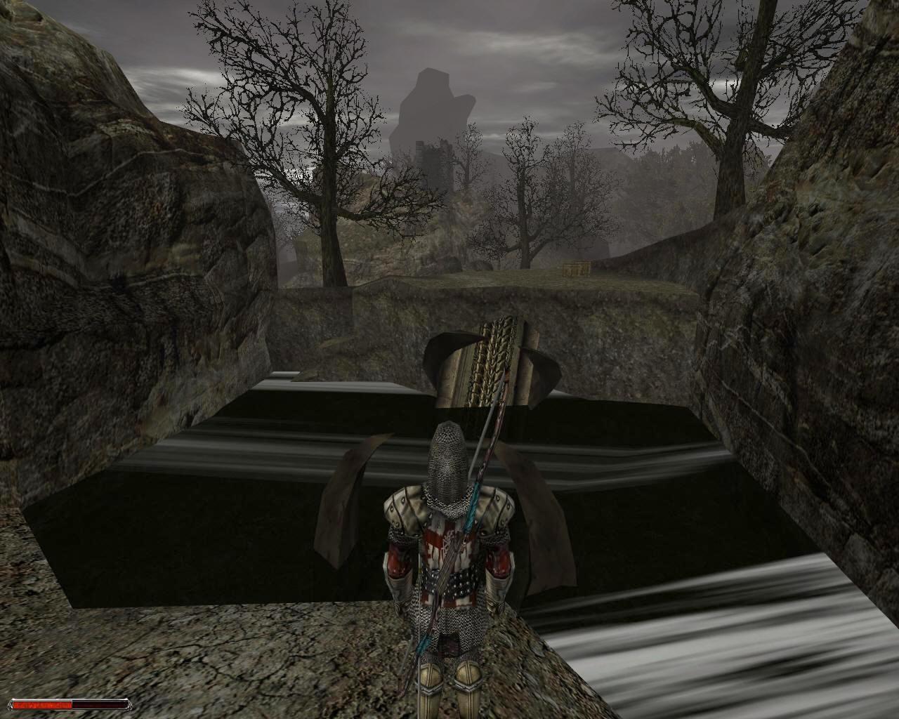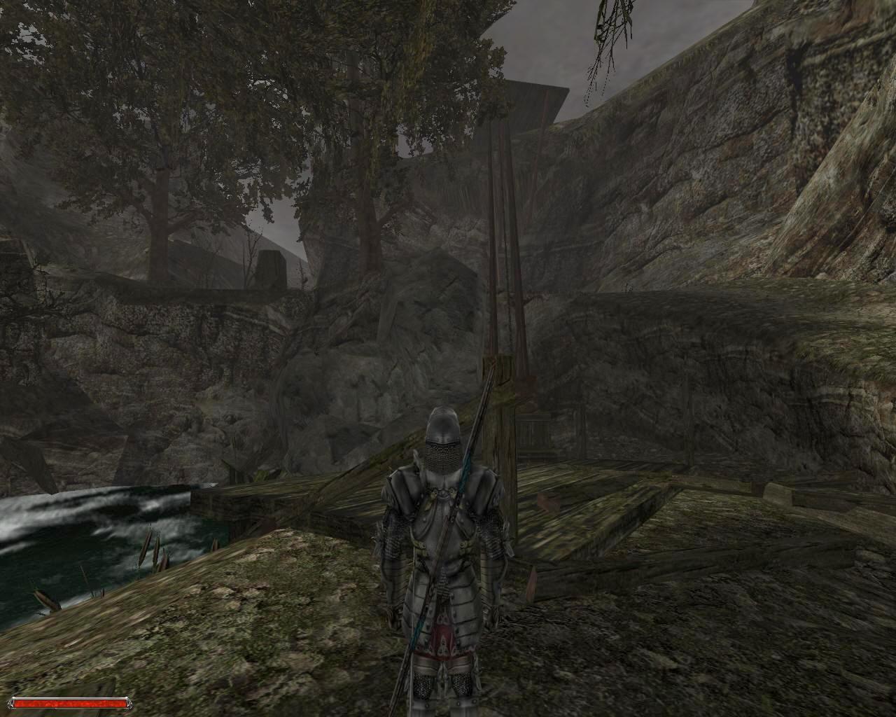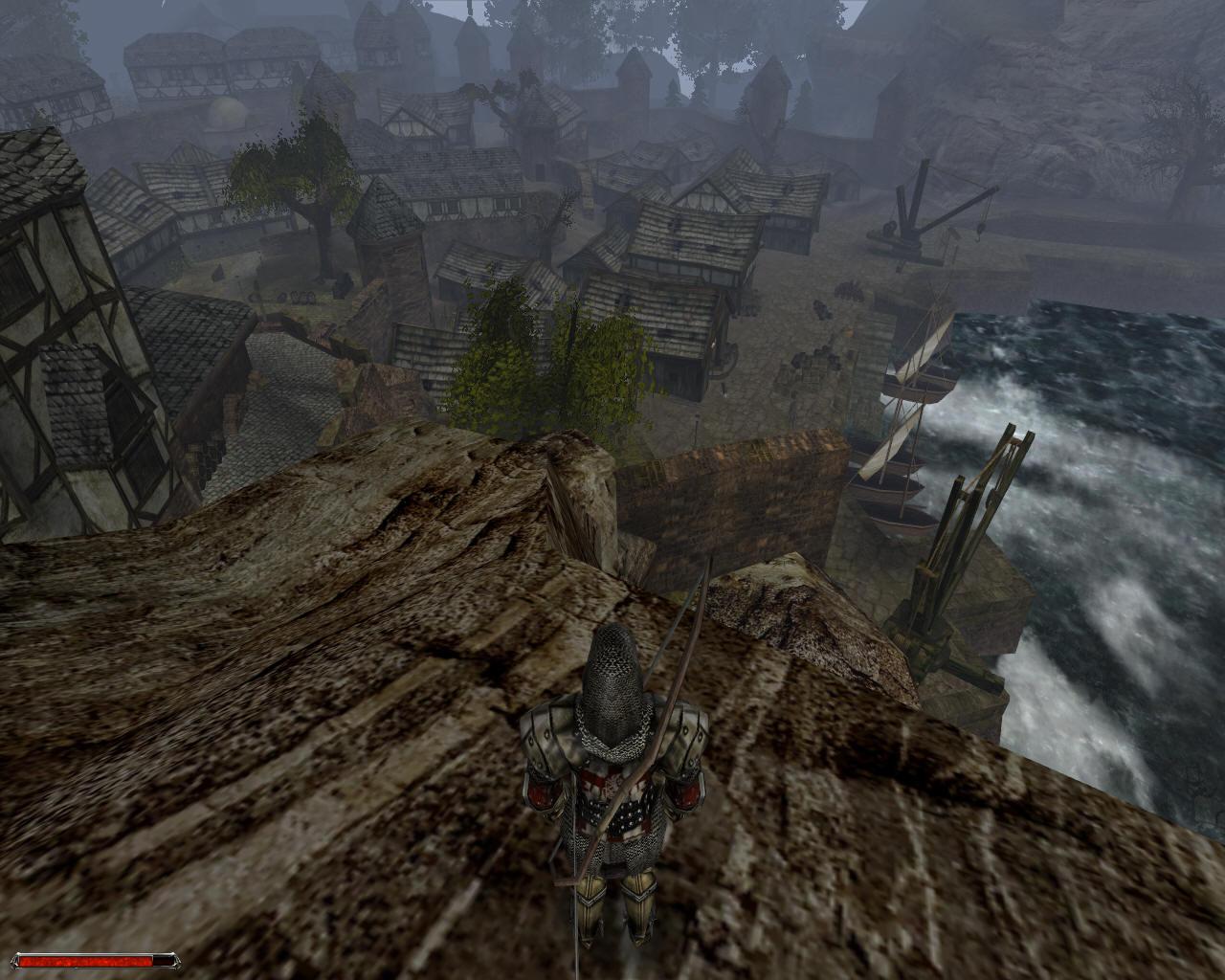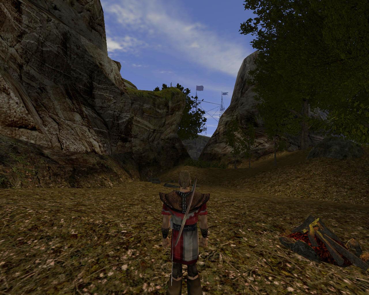 One thing that kind of disappoints me about the world design, is there are so many ways to go places you weren't meant to that you get stuck between rocks or sliding up a mountainside (yes.. sliding UP). I'll go through all these antics trying to jump to the top of a pile of boulders to get to the top of a cliff that I can only barely reach with the hopes of finding some special potion or scroll or book or character at the top, but instead I find holes into infinity, and ugly stretched textures that I wasn't meant to see. In the Old World I made it to where the Orc camp was supposed to be (the place across from the broken bridge), but found a mountainside that led up to nowhere (where a temple entrance used to be). Also, I found no secret caves or tunnels by swimming underwater (though I did read about one secret cave that can be found in the Old World somewhere).