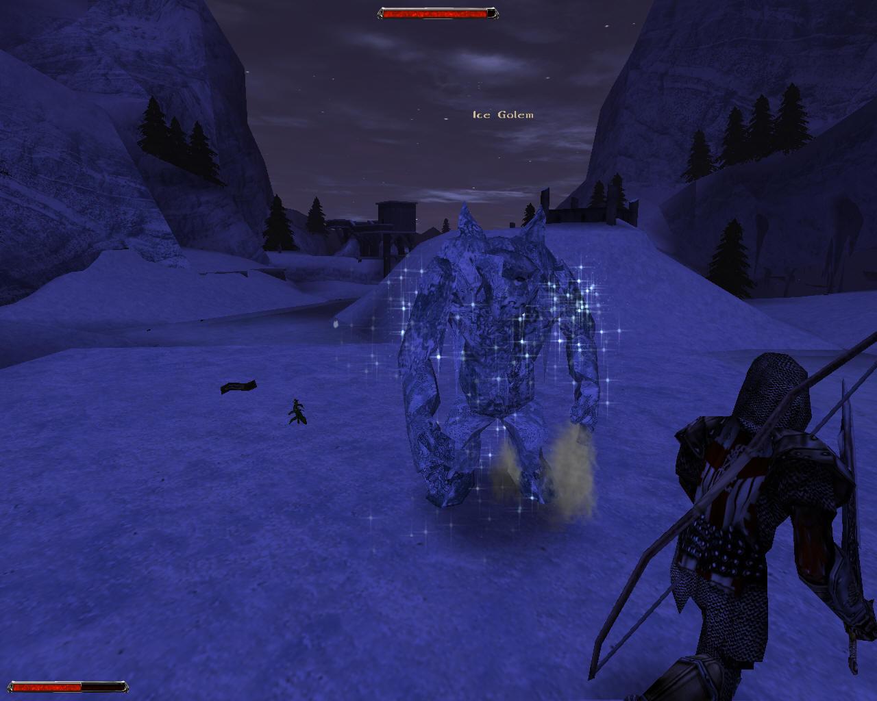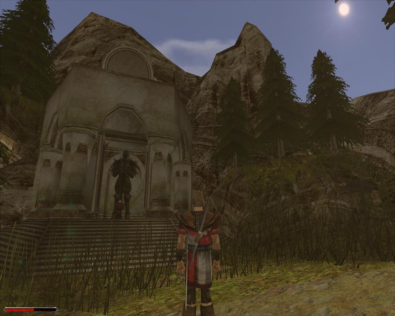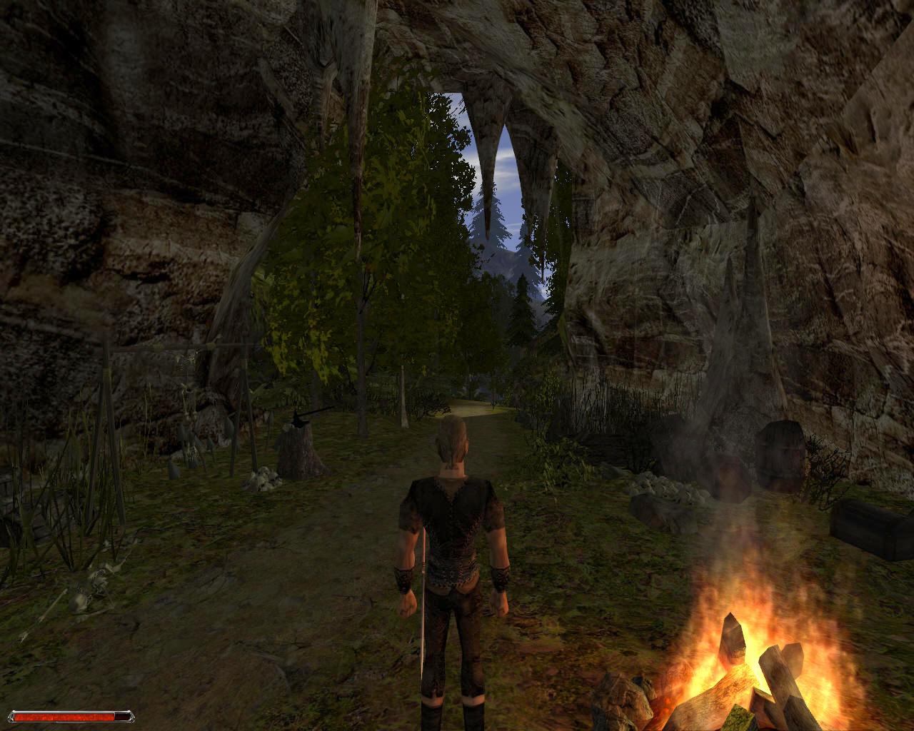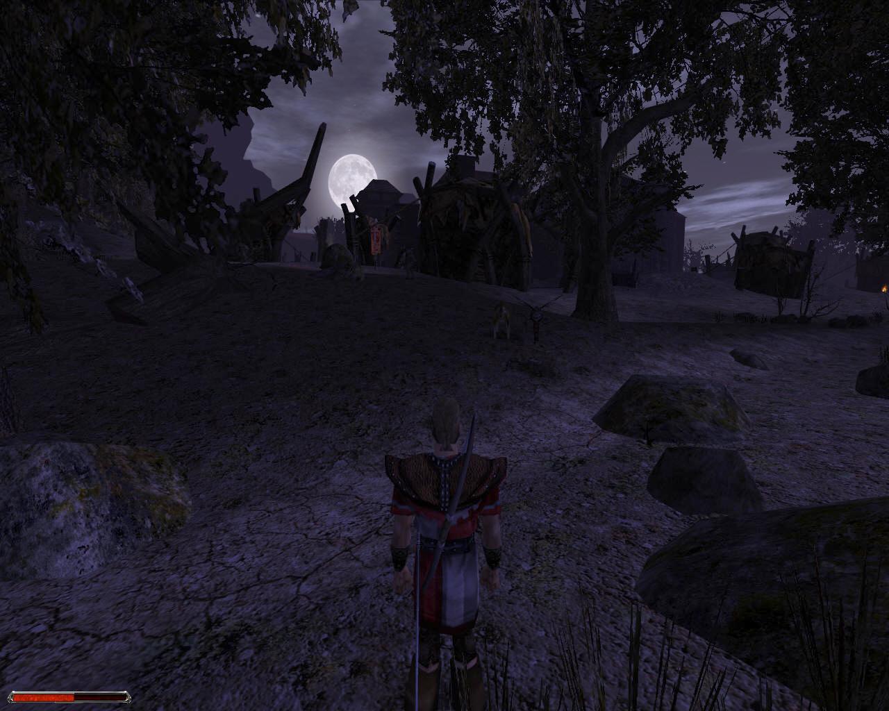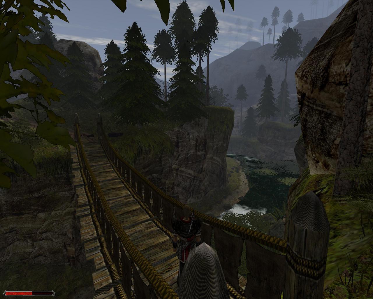 One thing that kind of disappoints me about the world design, is there are so many ways to go places you weren't meant to that you get stuck between rocks or sliding up a mountainside (yes.. sliding UP). I'll go through all these antics trying to jump to the top of a pile of boulders to get to the top of a cliff that I can only barely reach with the hopes of finding some special potion or scroll or book or character at the top, but instead I find holes into infinity, and ugly stretched textures that I wasn't meant to see. In the Old World I made it to where the Orc camp was supposed to be (the place across from the broken bridge), but found a mountainside that led up to nowhere (where a temple entrance used to be). Also, I found no secret caves or tunnels by swimming underwater (though I did read about one secret cave that can be found in the Old World somewhere).