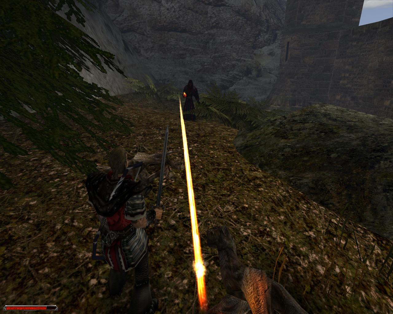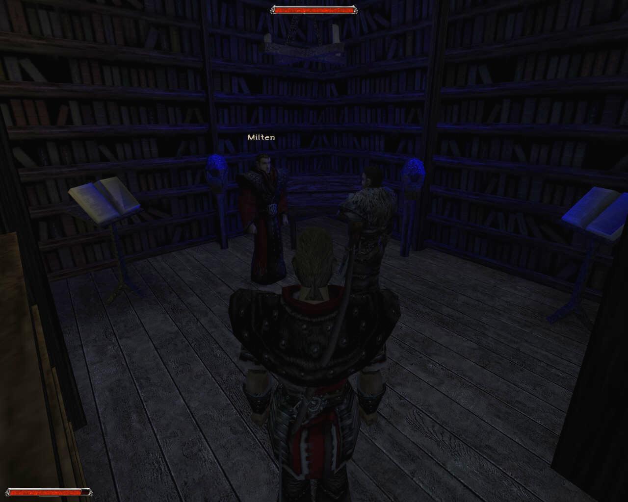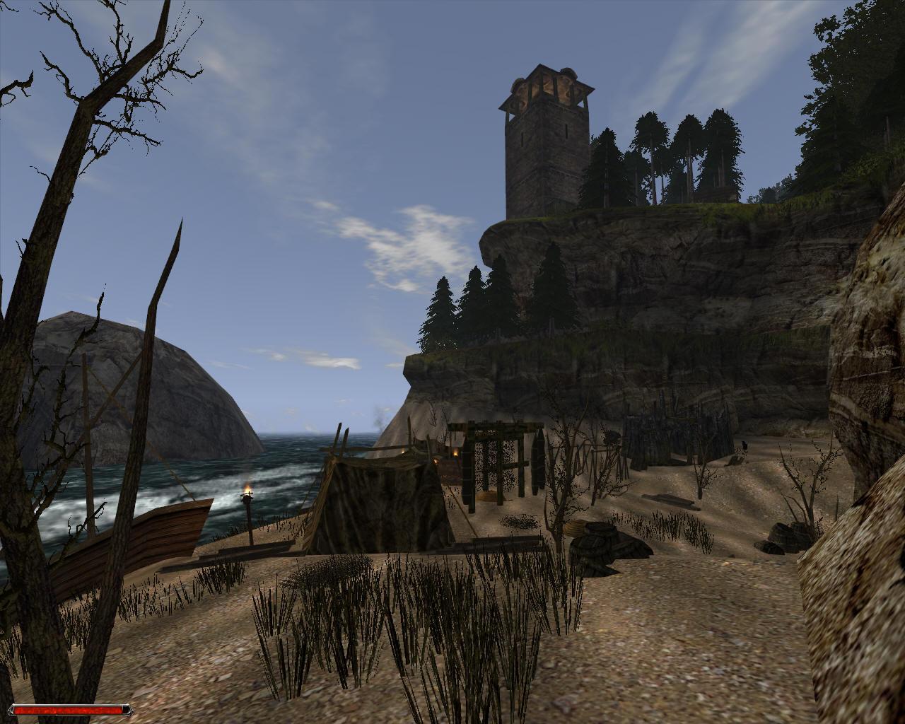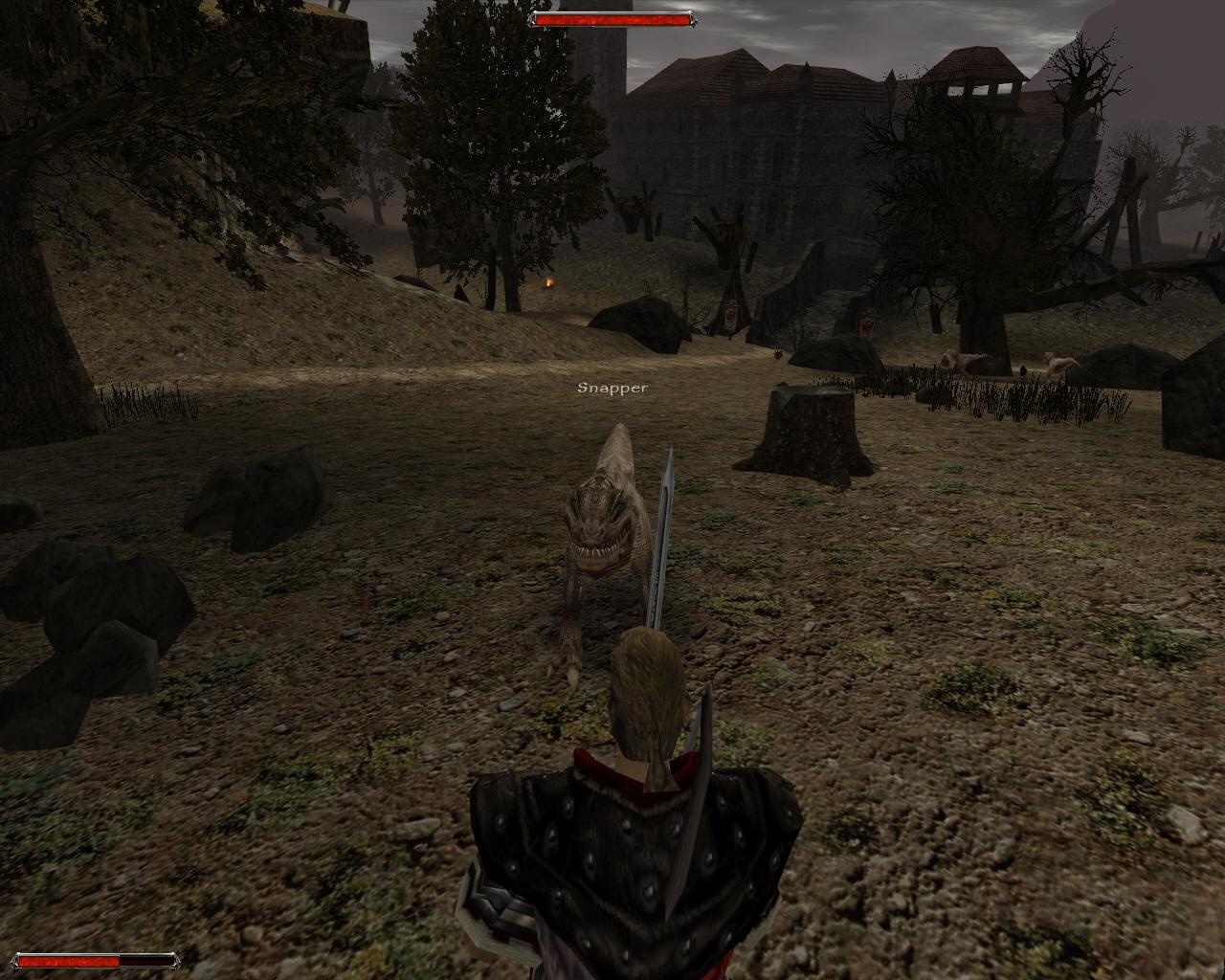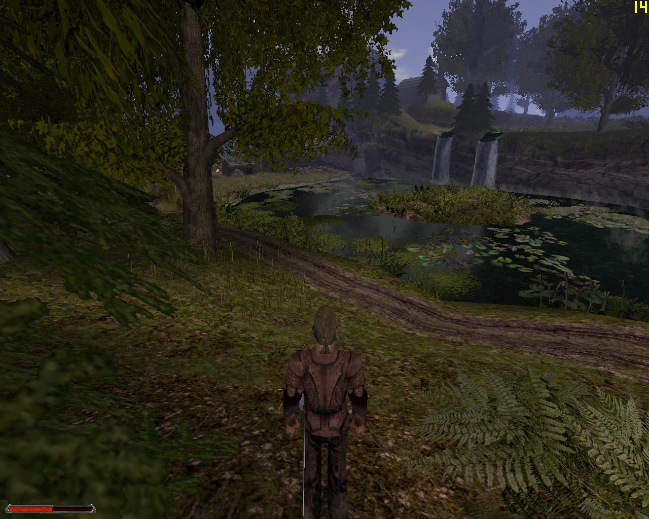One thing that kind of disappoints me about the world design, is there are so many ways to go places you weren't meant to that you get stuck between rocks or sliding up a mountainside (yes.. sliding UP). I'll go through all these antics trying to jump to the top of a pile of boulders to get to the top of a cliff that I can only barely reach with the hopes of finding some special potion or scroll or book or character at the top, but instead I find holes into infinity, and ugly stretched textures that I wasn't meant to see. In the Old World I made it to where the Orc camp was supposed to be (the place across from the broken bridge), but found a mountainside that led up to nowhere (where a temple entrance used to be). Also, I found no secret caves or tunnels by swimming underwater (though I did read about one secret cave that can be found in the Old World somewhere).