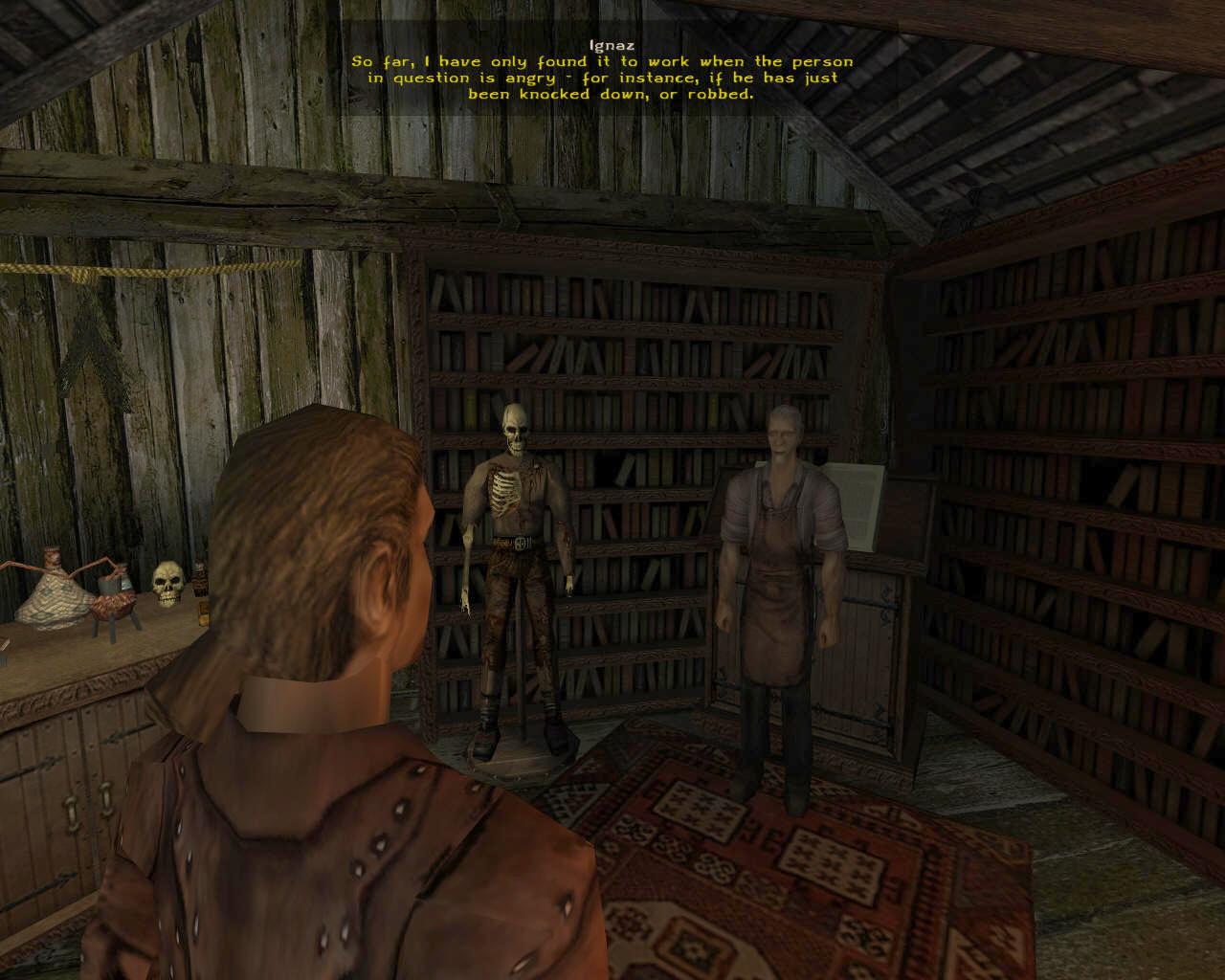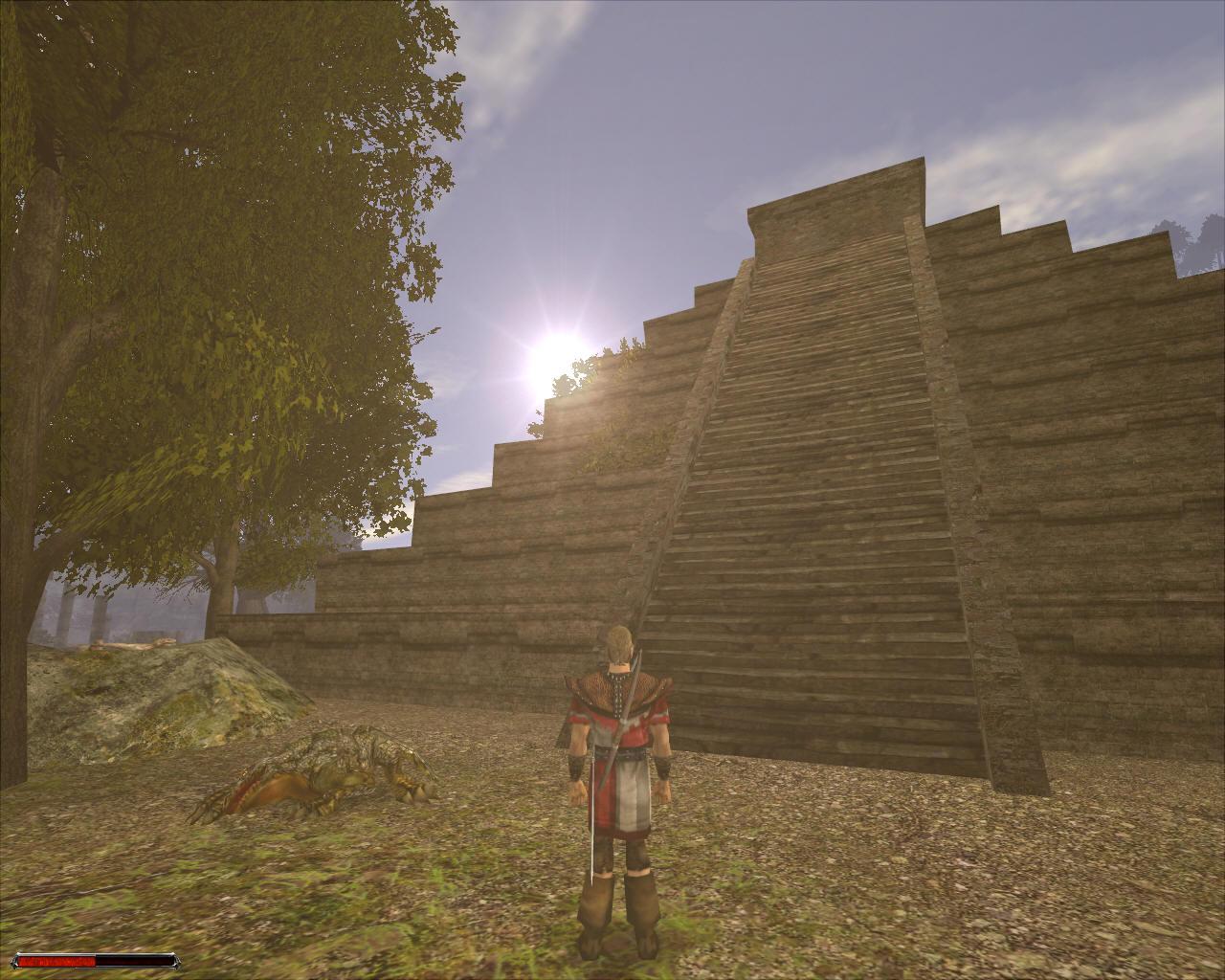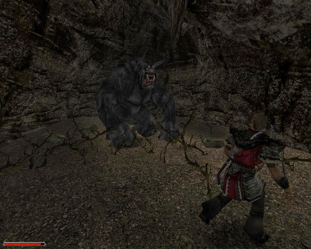 Well, enough of the story. The world (like the first game) is huge. Massive. Takes a long time to get from one side to the other. There are lots of characters to talk to and get quests from. And even pick their pockets if you take the time to learn the skill (and you can get some pretty useful stuff this way). There are monsters-a-plenty, most of which you cannot kill until your first ten or so hours of leveling yourself up (by completing quests, and killing the weaker monsters such as sheep). There are caves scattered about the world, some with monsters and some empty, and some with characters that you can get quests from (and pick their pockets too!). There are buildings scattered about the world and have pretty much the same attributes as the caves. There is even a pyramid that you don't ever have to set foot on (if I recall correctly) for any quest you'll encounter. Of course, in these caves and buildings are items and stuff that you may find useful throughout the game.