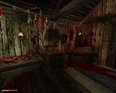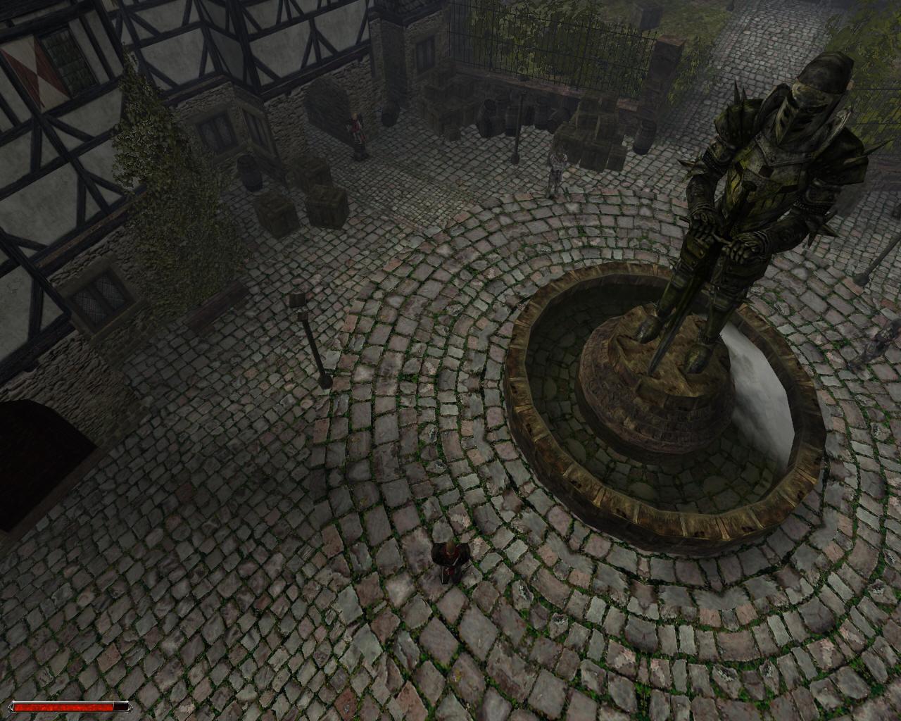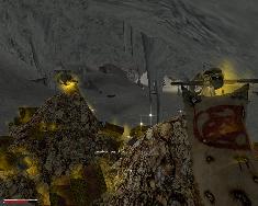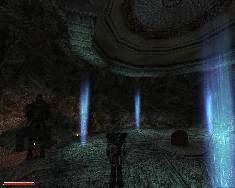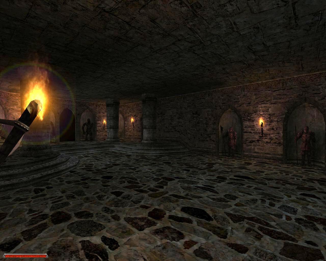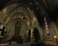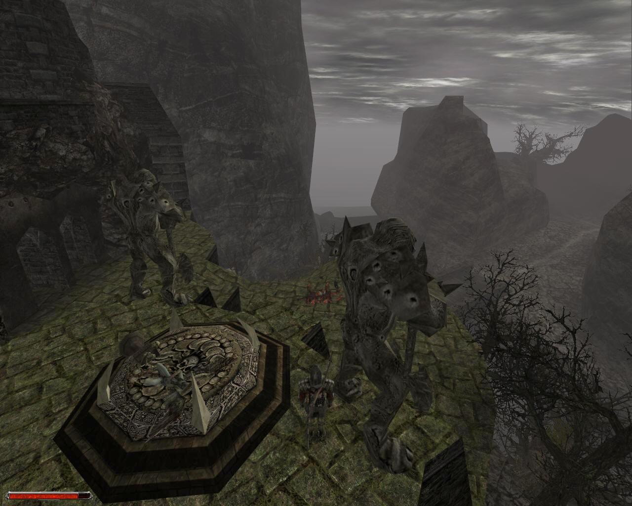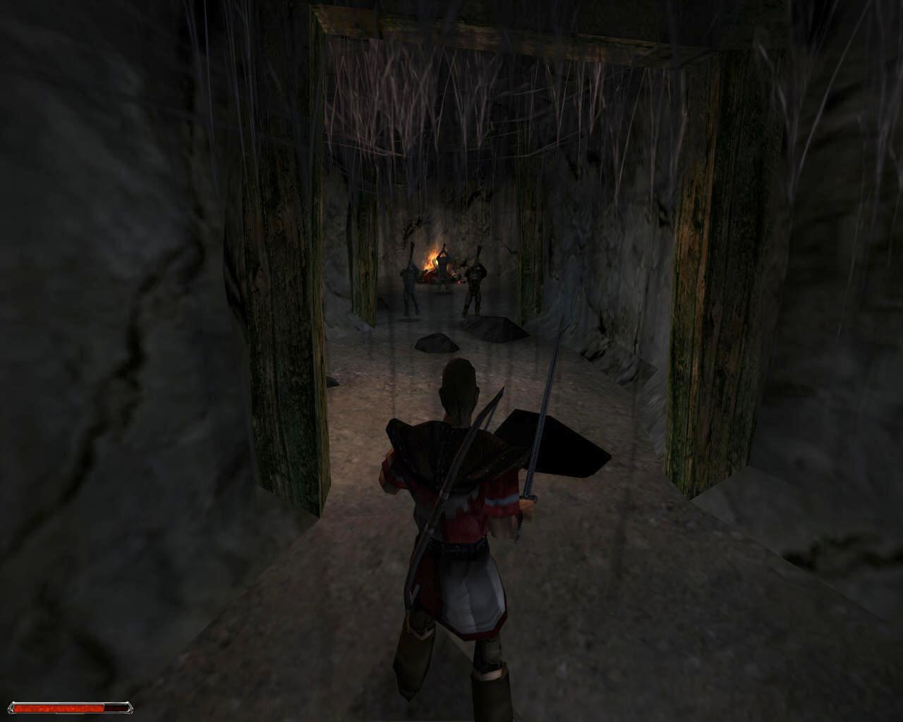 Talk about building up my excitement for nothing... Man this place was ugly. Lacked all of the pizazz of the first two worlds. The cave itself looked a mixture of two 8 color textures, one mostly gray and the other mostly black, spread across hundreds of angles and points and stretched almost to the point where you thought the texture would snap (but no, those are really stretchy buggers). There is a sort of crypt or dungeon or something inside the cave, that was somewhat well designed. But it lacked serious inspiration. What I said about there being no cut and paste leveldesign before.. well I lied. You see it here. Four rooms and tunnels are exactly the same, but forgivable because it makes the design symmetric in association to a certain puzzle you have to figure out to get through a door. Anyway, there's a room where you find a bunch of seekers and a Black Magician. This large room had tons of potential to be beautiful with it's intricate floor tiling and the pillars that bordered the floor, but instead came across bland and poorly designed because it did not fit well at all with the cave textures. It seems that the Gothic team were rushed during this phase in the development, because it sorely lacks anything challenging or interesting.