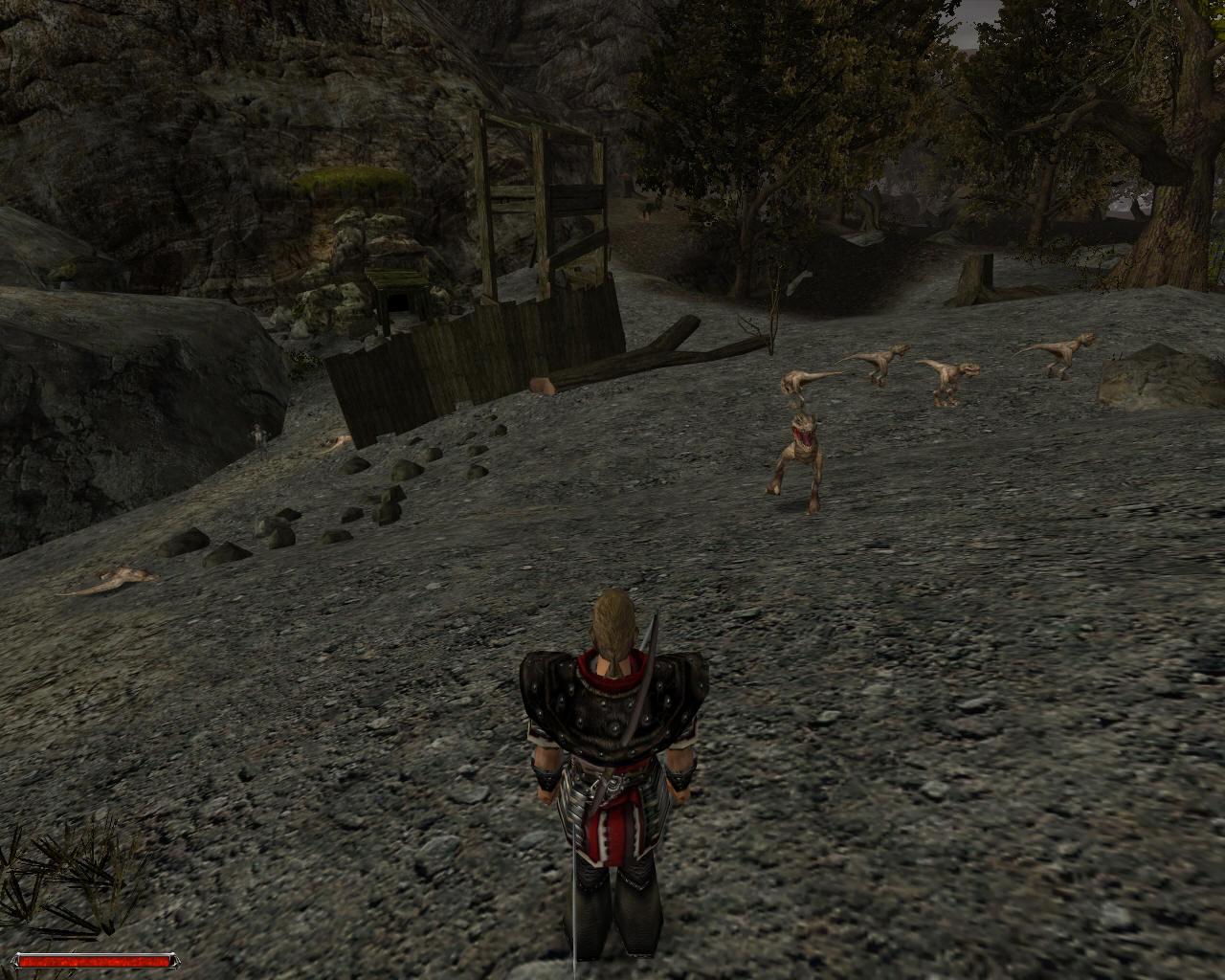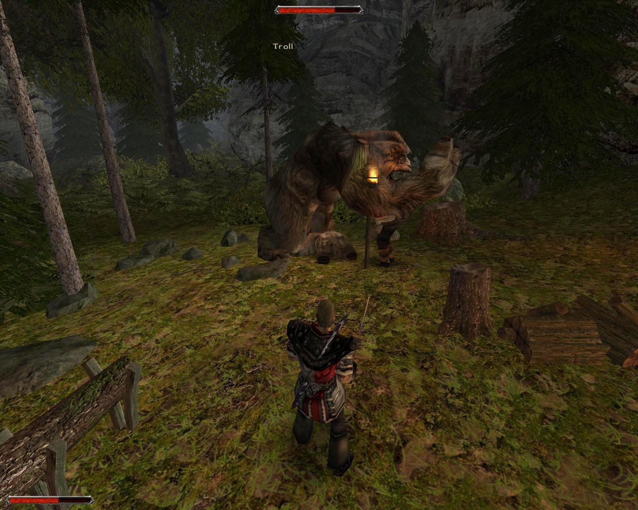 When you get to a certain point in the game, you are actually able to go to the Old World (which I found pretty exciting) where the first Gothic took place. Unfortunately it's only 50% the size it used to be, and it's a lot less green due to the dragon fire that blasted the area. However there are lots of monsters to keep you busy... Mainly, there are Orcs everywhere, but strangely enough the Orc camp from the first game is inaccessible because the bridge is broken. Instead they have built a huge fence (that closes off 25% of the Old World) and live behind there. Here is where the Eye of Innos comes into play, as you need it to get information from the four dragons (spread out in the four corners of the Old World) and then kill them.
