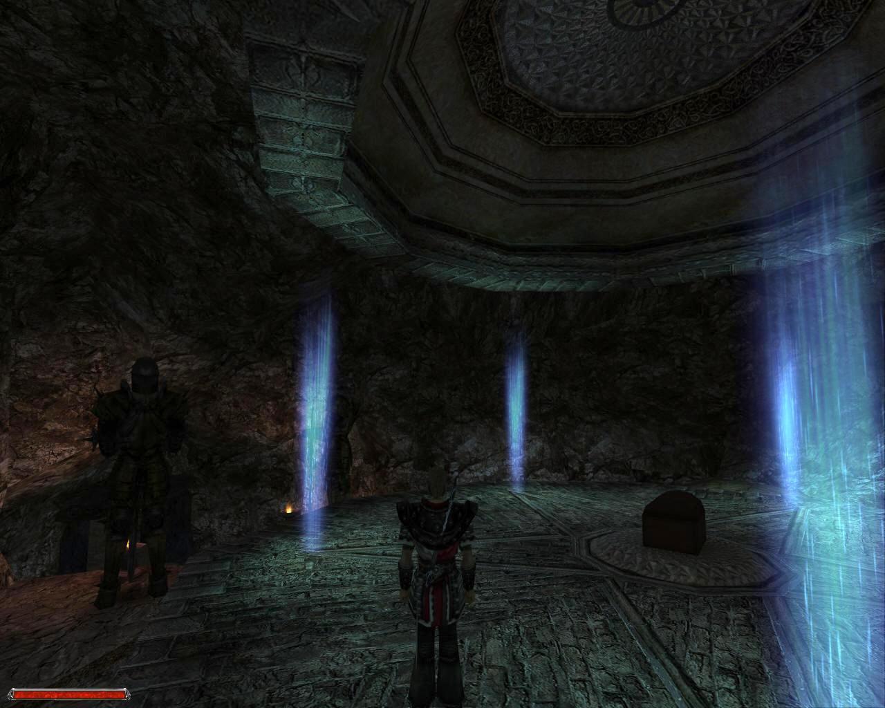 The game is fun and addictive to play. For the first 40 hours or so. You meet people, you find items, you find secret caves, and all kinds of stuff. You learn from different people different skills that you know will help you later on. You go around collecting/stealing things so that you can sell them in shops so that you can use the money to buy things you couldn't afford before..etc..etc. After that 40 hours, the world completely loses the challenge and mystery it had in the beginning. The last bit of quests for you to complete aren't quite as inspired as they were in the beginning. The monsters that gave you so much trouble and grief, causing you to reload your game hundreds of times are now dead in one or two clumsy sword swings. All the items you got that boost your stats are no longer nessecary. The amout of gold that you've acquired will buy anything you want, not that there is anything that you actually want. So here's where the game takes a sidestep. Time to go to a completely new, third area (in addition to the old and new world). Call this one DragonIsland, or The Halls of Idorath. The place where your ultimate enemy awaits.