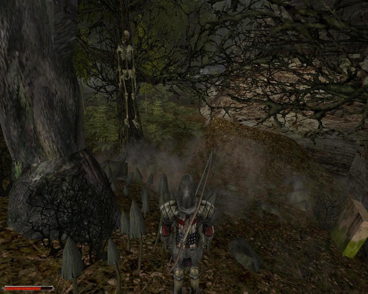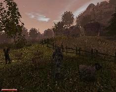 The graphics of the game are pretty simplistic, but very effective. Textures blend together well (with the exception of the Halls of Idorath) and that makes everything look hand made. Cut and paste leveldesign is not used in this game.. Not one section of world looks like another. There are also objects scattered in places that could tell a story of it's own. One cave I saw had a bunch of skeletons and wagons smoldering right outside of a cave, which said to me that the people that once lived inside there were attacked and they couldn't quite escape. Also, (here and there) you'll see skeletons hanging from trees or sitting in a corner somewhere (sometimes with potions and scrolls near them) which creates a certain atmosphere that can't really be felt in any other game. My only complaint is the animation sucks. Especially the sword swinging. Oh, and the third world you get into, The Halls of Idorath is really poorly made especially when you compare it to the Orc Temple (the last level of the first Gothic). It seems as though the development of the game was rushed towards the end.