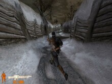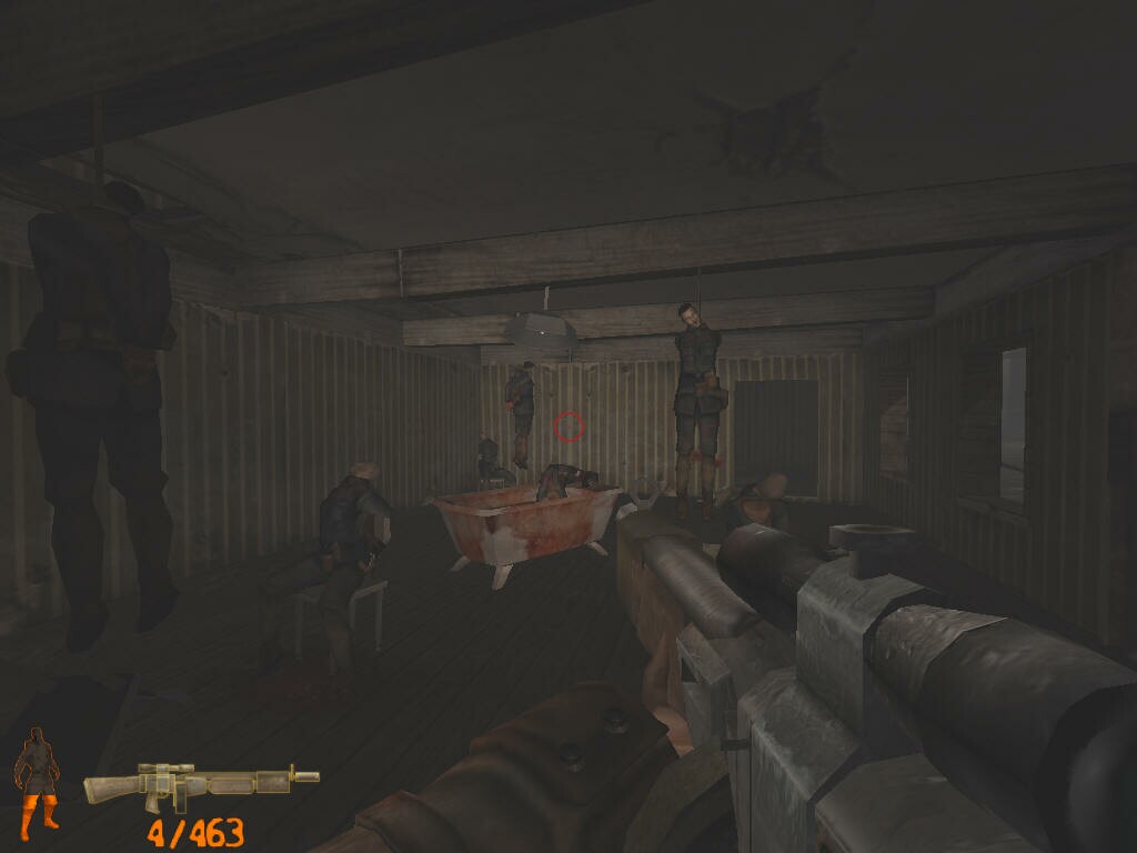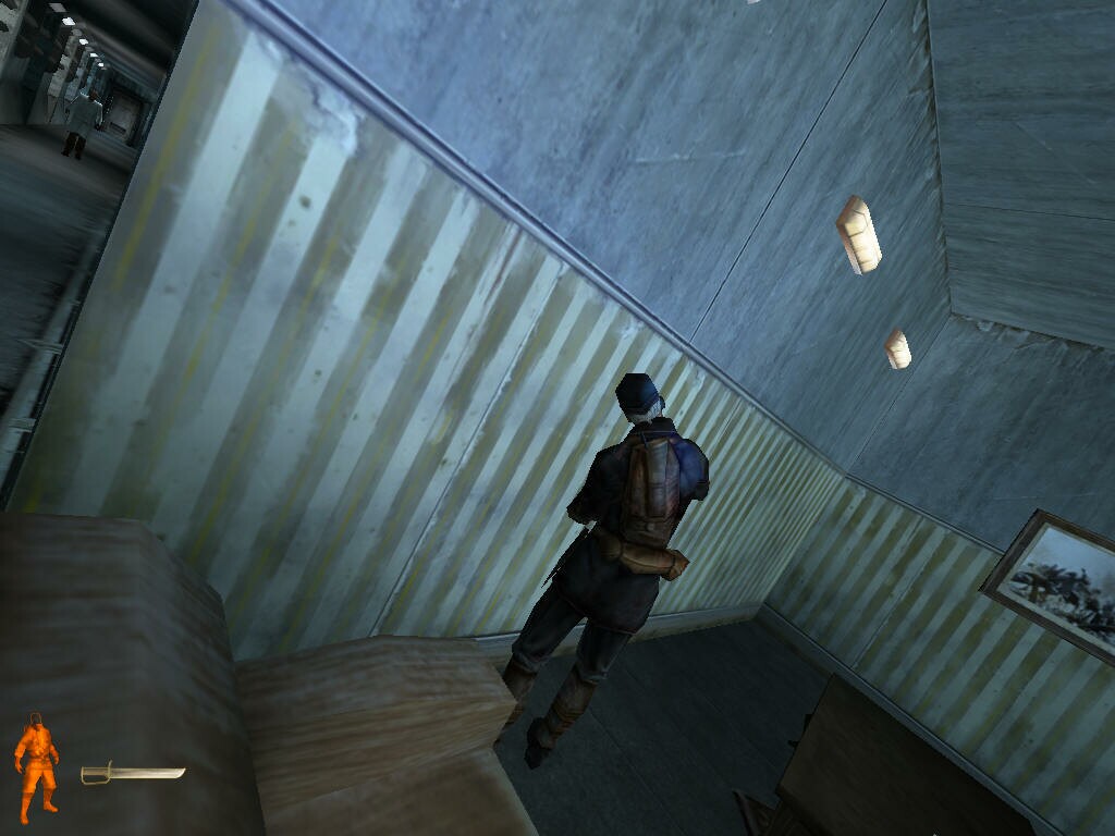 But anyway, the meat of the game is pretty good. Each section you end up in always has a little trick or puzzle you have to figure out before you can get past. There's little clues here and there for you to use to figure out what to do. Unfortunately this involves a lot of back tracking, and also adds a bit of unrealism to the game. Another instance is (on the train again) there are four guys huddled up in a gun turret. When you climb the ladder to get up there, they kill you in less than half a second time. I've gone as far as climb up, throw a grenade into the hatch and jump down. Explosion happens, I go back up and they are all sitting there, waiting for me. Turns out they are invincible. The only way you can kill them is to find a well hidden hole, so you can snipe them from a distance. But other than that, the tricks are somewhat clever.