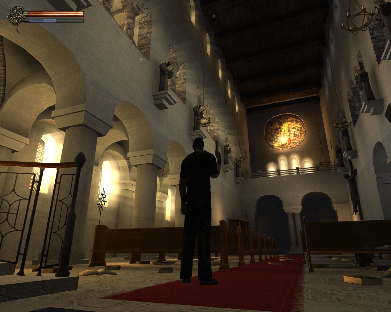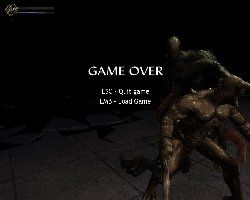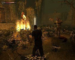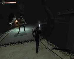 Another part of the gameplay is puzzle related. There will occasionally be large cubes of concrete that can only be moved by the demon, and moving them will allow you to get to required areas of a map. There are also thinking puzzles (a la Tomb Raider.. but not nearly as many) where you will have to turn something, watch it's result.. turn another thing watch the result.. and keep doing it until things get straight (that's as general as I can get). Also there are buttons/tiles you will have to press in certain sequences.. and finding what the sequences are supposed to be can be tough. And of course you have the typical 'find a key to unlock a door' puzzles. I was disappointed in the fact that there are no "shoot the button" puzzles.. There were things sticking out of walls in various unreachable places that looked like they could have been buttons to shoot.. but shooting them resulted in nothing more than a little less ammo. I think it's possible that this was in the original game design, but did not make it to the final cut.