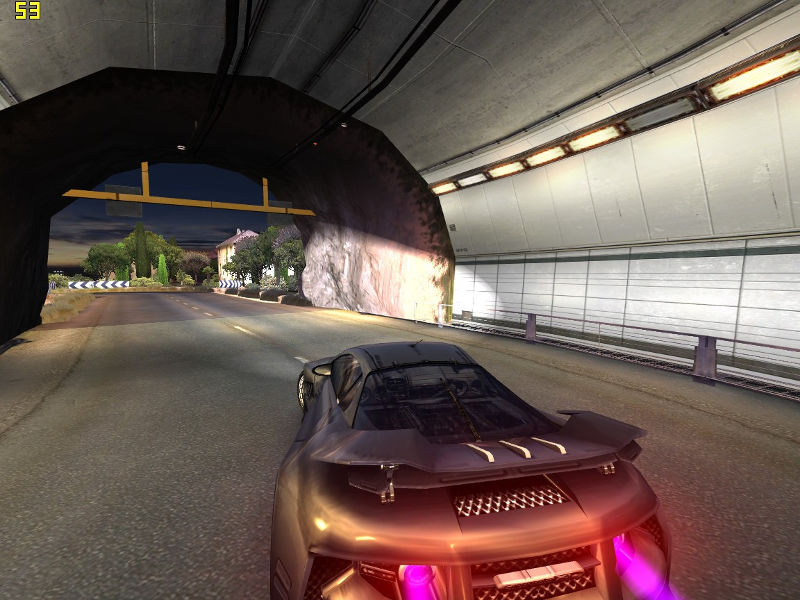 Some of the scenes in this game are unbelievable looking. The only other game I've seen with more detailed or realistic pixel shading was Half Life 2... Nadeo did it perfectly as well, except for the water. The roads look like I can reach out to my screen and touch them. Unfortunately, the same can not be said about the trees. TMS has probably the ugliest nastiest looking trees to ever be seen in a game and I'm ashamed to have them in some of my screenshots. The dynamic shadows are pretty good... especially in the night tracks where the lights will cast from 2 to 8 shadows over your car at any given time. One of the neater features of the engine is the constantly changing brightness, contrast, and saturation (as if clouds are passing underneath the sun). On top of that these will change dynamically depending on which way you are facing, which makes for a very realistic look.Sound