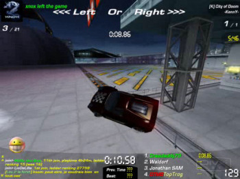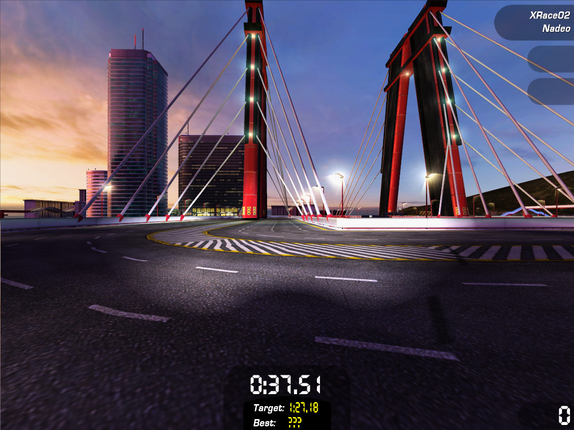 The heart of this game is it's multiplayer mode. You join a server that is hosting potentially 100+ tracks that you've never played before and you race against people from all over the world... mostly France. Most of the people playing are on a pretty bad internet connection, so be glad that there is absolutely no collision detection in TMS (or any other Trackmania game). There are some really good tracks out there and once you join a server you have the option to download the track to your computer as a challenge before/during/after your time on the server. There is an "Official Mode" that you can turn on, which enables you for ladder play. Depending on how well you race compared to the other people on the server you'll get more points... The more points you get the higher up the ladder you go. Right now I just broke 4000th place with a total of 200 points (I've only recently discovered the excitement of the multiplayer mode - that and I'm really not very good compared with the other peeps on the server. As an example the 1st place guy can run the track in 2:04:32 and I'll run it in 2:05:45 and I'll be 12th place).