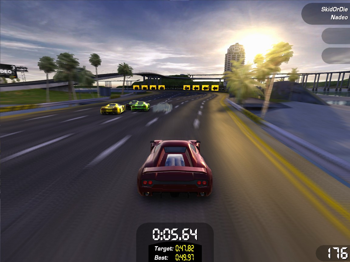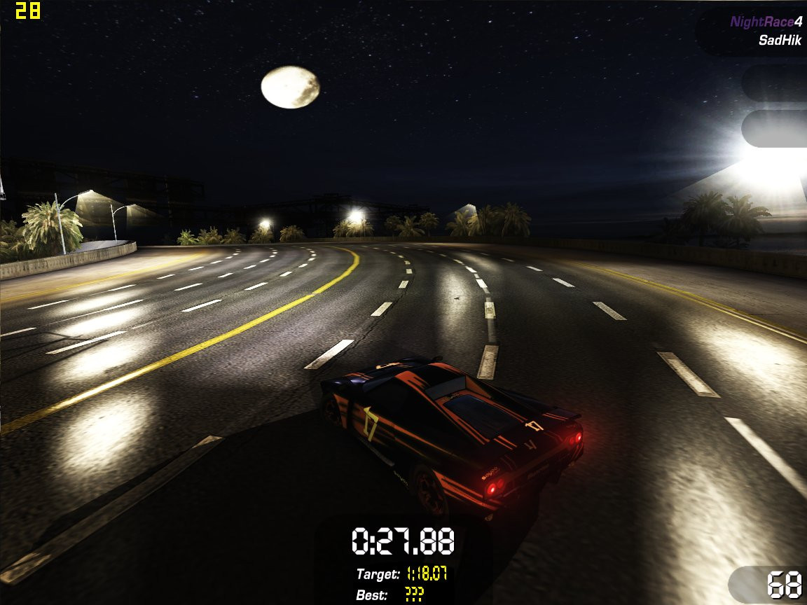 The audio isn't very exciting. At times the pitch of the engine sound does not match the speed you are going. Sometimes it feels like you're spinning your tires (mainly in the muscle car), but the tires don't sound like they are spinning (meaning, the engine will sound like it's going full speed but you will still be accelerating). The music (save for the main menu track) was not very good, and some of it outright annoying. Thankfully this is rectified by simply deleting the tracks that came with the game and putting in your own. Audacity is capable of converting mp3s into ogg format.Controls